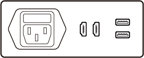 AC(1個)、デジタル映像端子(2個)、USB(2個)